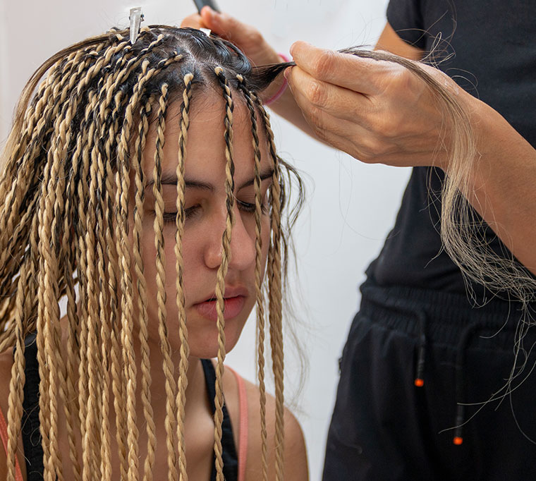 We braid softly, without pulling, and use light hair to avoid pressure or soreness.